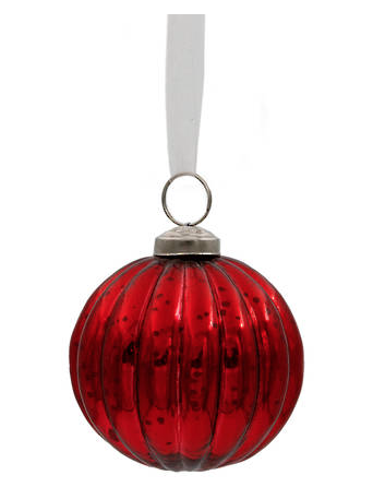Red Ribbed Glass Bauble 7.5cm