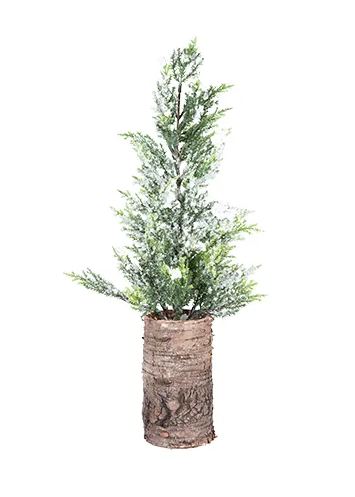 Artificial table tree with wood base and snow detailing. Use to decorate the home during the festive season.