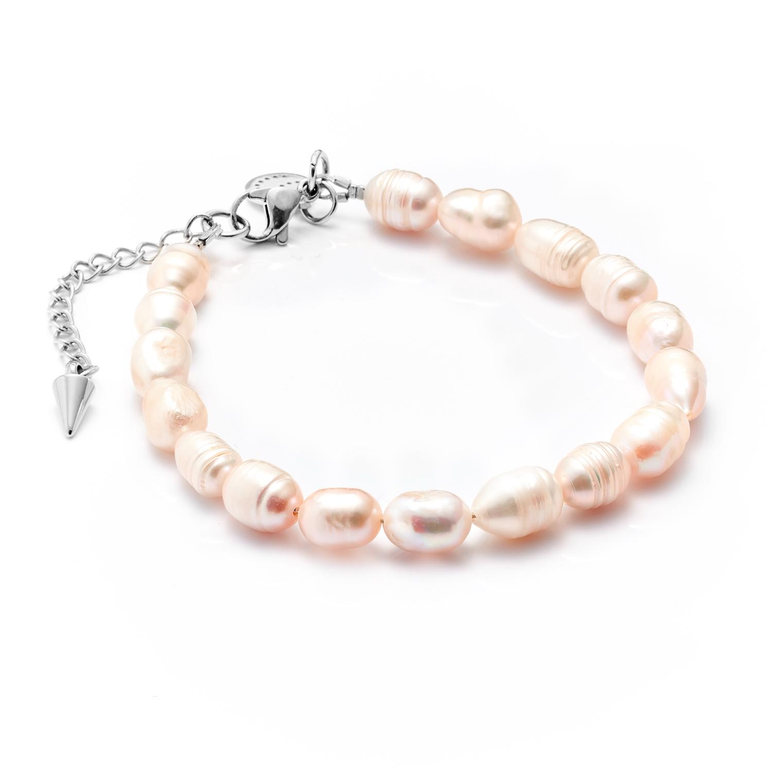 Blanc Bracelet Pearl and Gold – Freshwater Pearl Bracelet with 14k Gold Plated Stainless Steel Extension Chain with Spike and S Charm