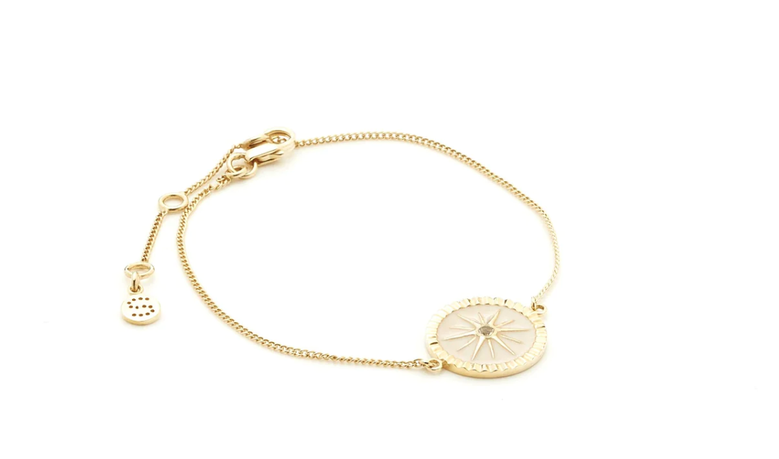Guiding star white enamel pendant with White Topaz gem on 14k gold plated sterling silver chain
