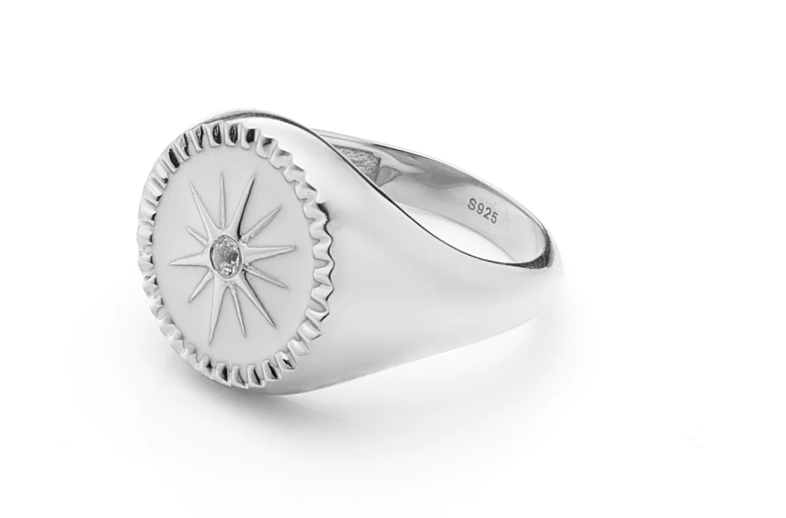 Guiding star ring in white enamel with White Topaz gem on rhodium plated sterling silver