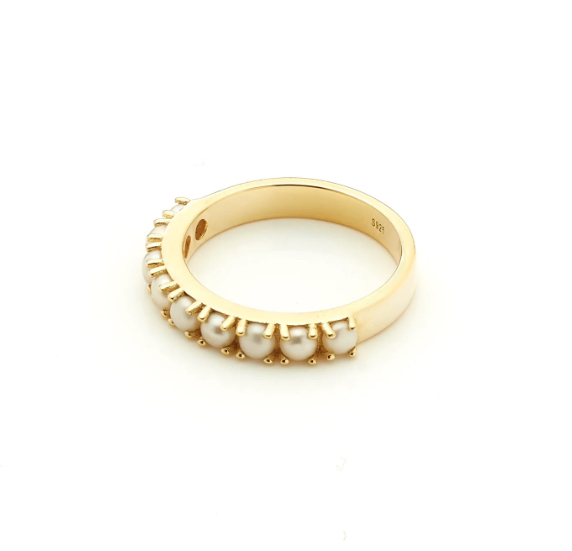 Eternity Ring set with freshwater pearls in 14k gold plated sterling silver