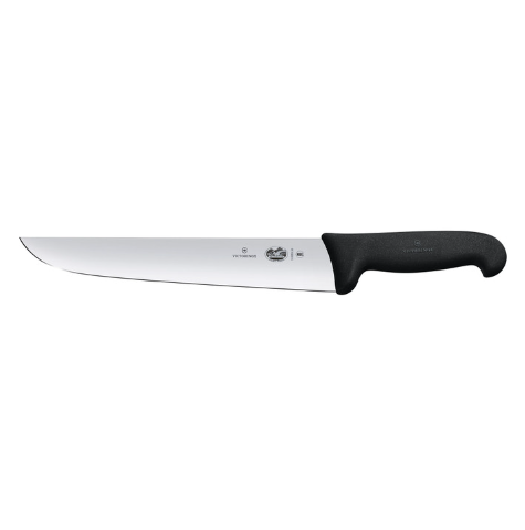 The Victorinox Straight Back Blade Black Fibrox Handle Butcher Knife made from high-quality and durable materials with ergonomic design. The right blade hardness and the laser-tested cutting angle guarantee high edge retention.