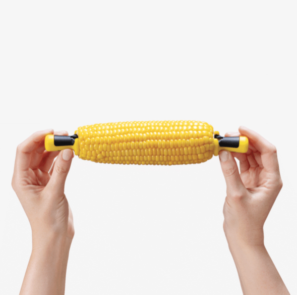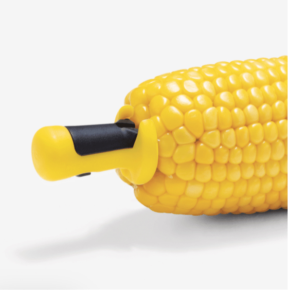 Lockorns are a 4 pair set of corn holders that securely anchor into corn cobs and locks together for safe storage.